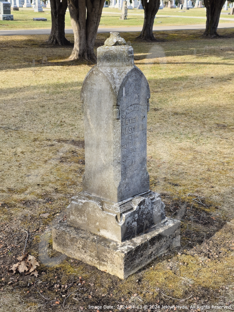 On one face of the tall section, the text “IN MEMORY OF” has been drawn. “www.jeklynhyde.com” has been digitally added underneath.