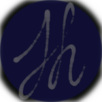 Digital handwritten cursive lowercase letters “jh” in transparent white over a dark blue circle background.