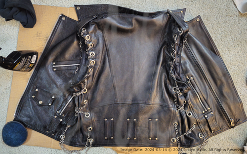 Since I was intending to dye and condition the jacket, I wanted to make sure I got all surfaces, so I opened the chain back up and reattached the sections I had removed (I still knew where I was keeping them and found them quickly!). This allowed me to expand the sides again for easy access.